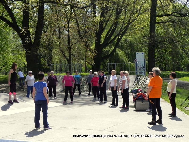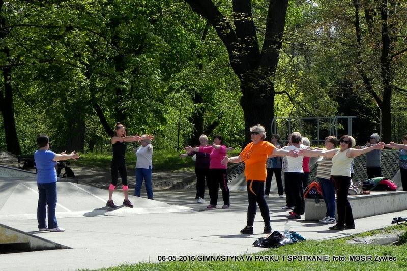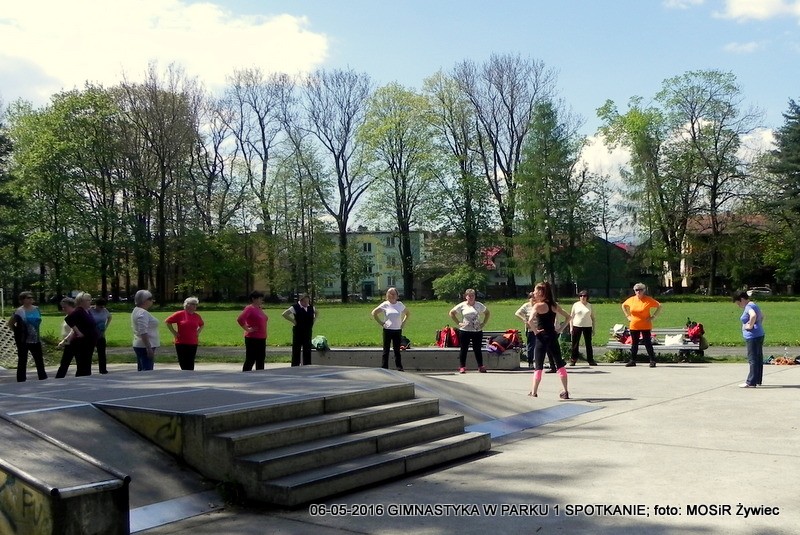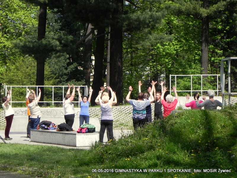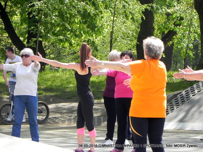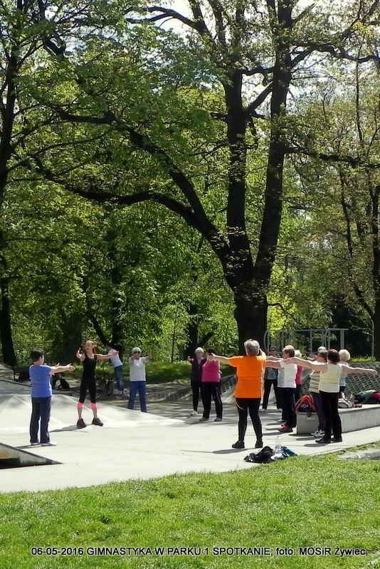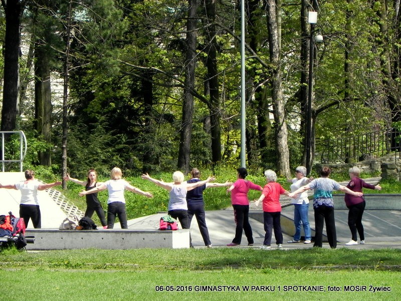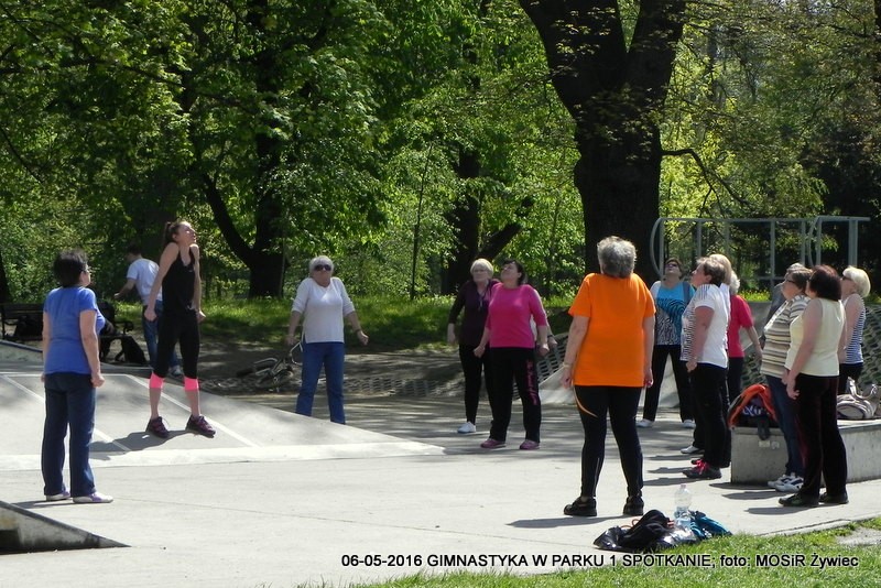 Pierwsze spotkanie i pierwszy sukces. Entuzjazm Uczestniczek dowodzi, że pomysł był strzałem w dziesiątkę. Pogoda oczywiście dopisała - to już reguła w przypadku projektu "SENIOR/KA ŻYWIEC 2016". Prowadząca, czyli trenerka Ewelina Cienkus, skupiała się na każdej uczestniczce indywidualnie, korygując na bieżąco postawę podczas ćwiczeń. Kolejne spotkanie w ramach inicjatywy: GIMNASTYKA W PARKU" już we wtorek, 900.