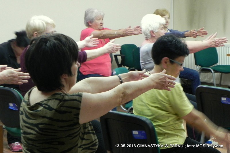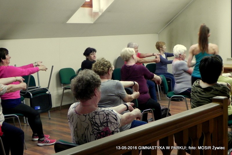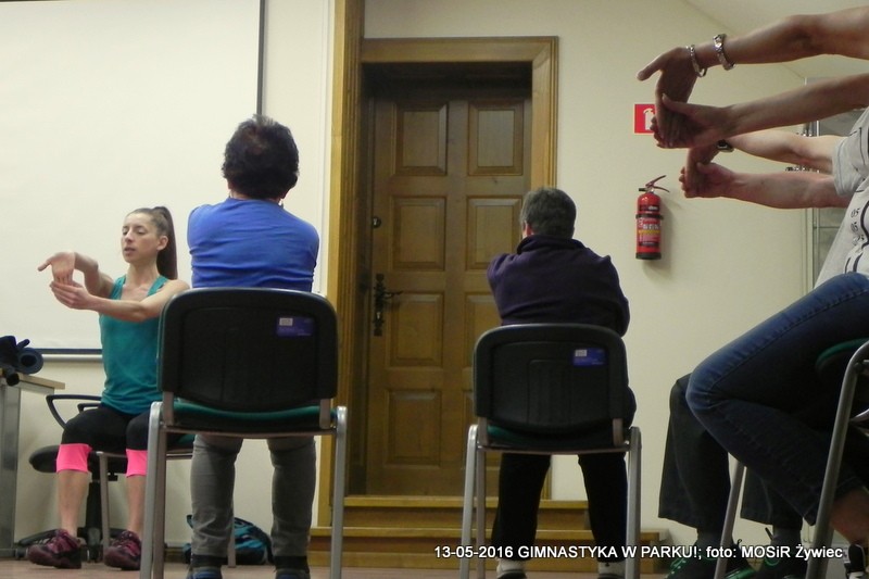 Mimo deszczu - padał po raz pierwszy podczas zajęć od marca! - trenerka Ewelina Cienkus świetnie poprowadziła zajecia, wykorzystując przestrzeń w biurze Informacji Turystycznej. Ćwiczenia z użyciem krzeseł, świetne do wykonywania również w domu, podczas ogladania TV czy pracy z komputerem.