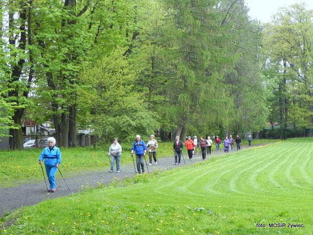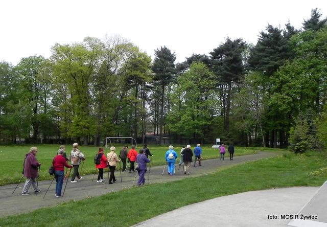 Dzisiaj na boisku w Parku Miejskim w Żywcu można było spotkać nie tylko naszych seniorów, ale również najmłodszych z naszych okolic. Grupa przedszkolaków przygotowywała się do mini biegów wzdłuż boiska. Dzielne dzieciaki mogły przypatrywać się jak trochę starsza od nich grupa aktywnych seniorów, rozgrzewała się do maszerowania w stylu Nordic Walking. Nasi uczestnicy projektu mogą dawać przykład wszystkim młodszym jak zdrowo i aktywnie można prowadzić życie!
