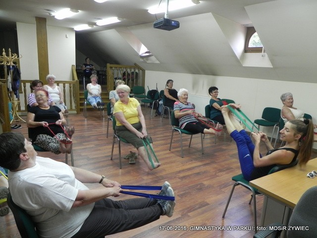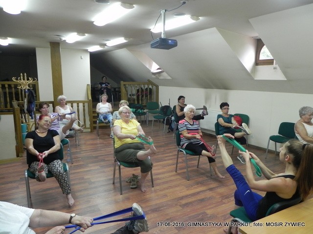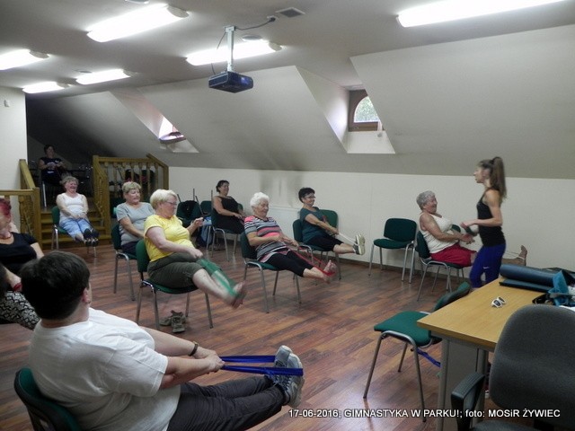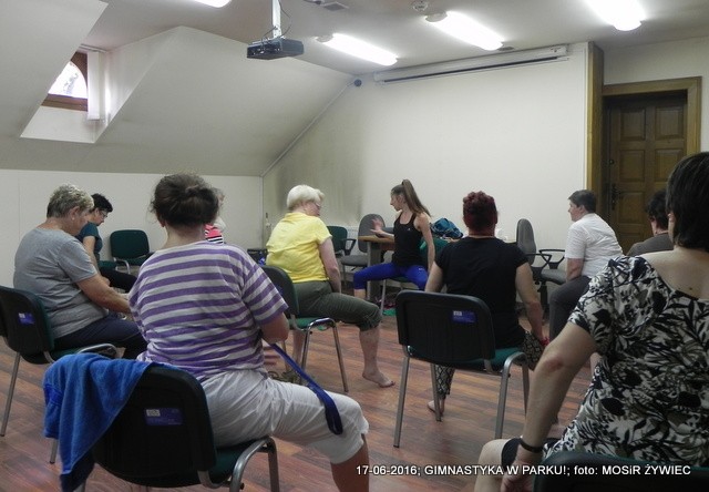 Ze względu na niekorzystną aurę, zajęcia z gimnastyki odbyły się w sali Centrum Informacji Kulturalno-Turystycznej w Żywcu.