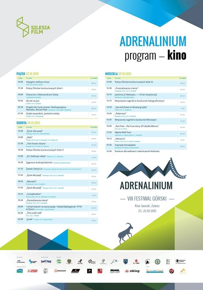 VIII Festiwal Górski Adrenalinium 23-25 października br. w kinie Janosik w Żywcu!