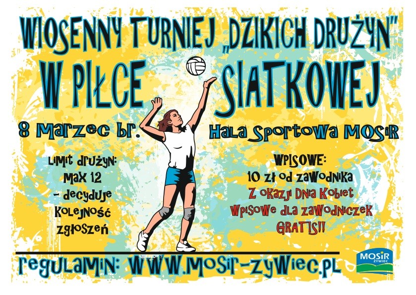 Miejski Ośrodek Sportu i Rekreacji w Żywcu serdecznie zaprasza na coroczną edycję imprezy sportowej dla miłośników piłki siatkowej - WIOSENNY TURNIEJ "DZIKICH DRUŻYN" W PIŁCE SIATKOWEJ.
