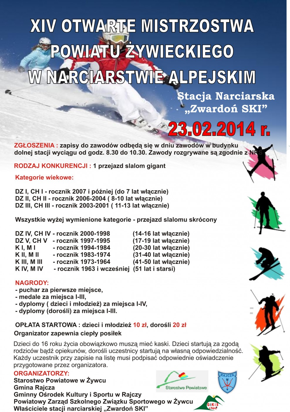 12.02.2014 XIV Mistrzowstwa Powiatu Żywieckiego w Narciarstwie Alpejskim 23.02.2014 Gmina Rajcza i Starostwo Powiatowe w Żywcu serdecznie zapraszają wszystkich chętnych na "XIV Mistrzowstwa Powiatu Żywieckiego w Narciarstwie Alpejskim" Szczegóły w załączonym plakacie. Galeria zdjęć Kliknij w zdjęcie, aby je powiększyć. Wróć do listy Poprzedni Następny Drukuj