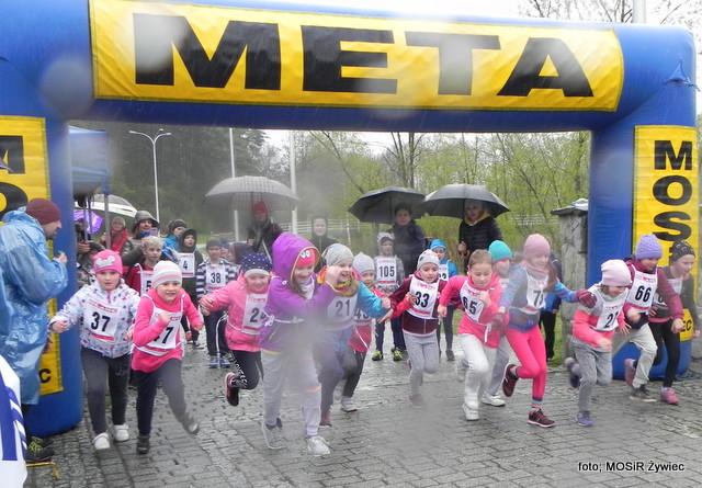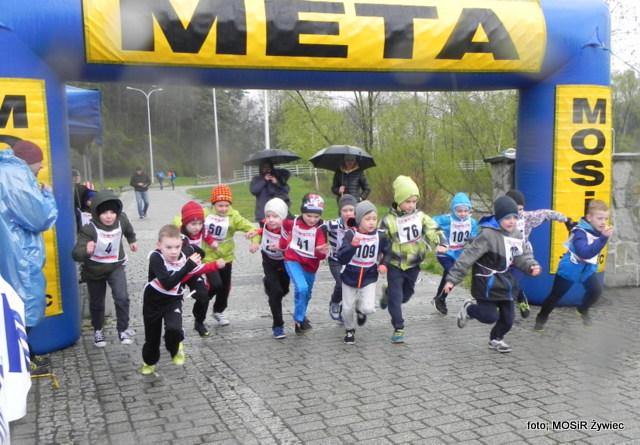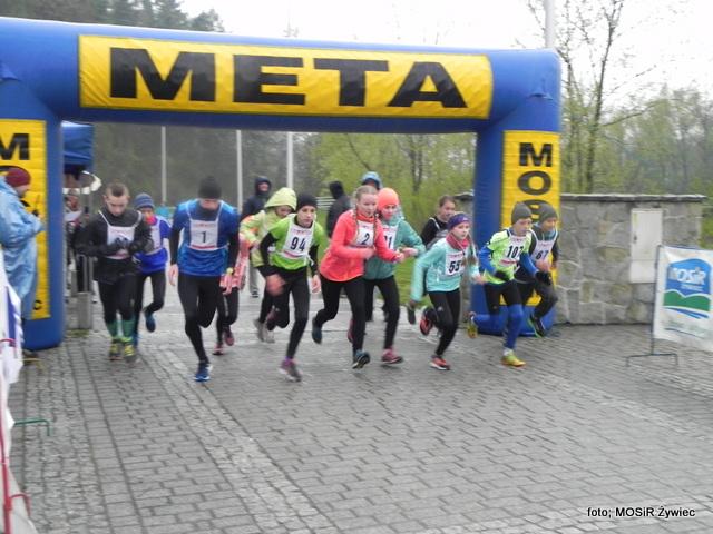 Choć festiwal wiosenny to aura pogodowa bardziej przypomina zimę. Trochę deszczu, płatki śniegu na ścieżkach, a między drzewami wytrwali zawodnicy którym nie straszna taka pogoda. Dzielnych uczestników na starcie stawiło się ponad 100. Zaczęli swoje zmagania o godz. 1100 i ruszyli w drogę zdobywać Grojec. Młodsi zawodnicy też pojawili się w licznym gronie i walczyli o jak najlepsze wyniki na dystansie od 200 do 2000 m w zależności od wieku.