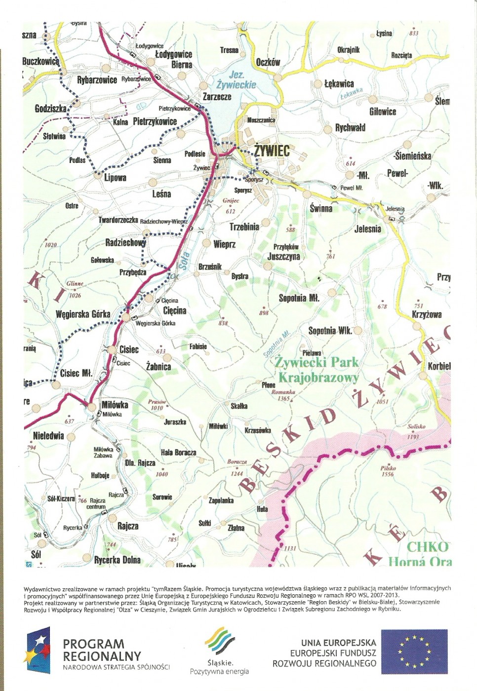 Wydawnictwo zrealizowane w ramach projektu "tymRazem Śląskie. Promocja turystyczna województwa śląskiego wraz z publikacją materiałów informacyjnych i promocyjnych" współfinansowanego przez przez Unię Europejską z Europejskiego Funduszu Rozwoju Regionalnego w ramach RPO WSL 2007-2013. Projekt realizowany w partnerstwie przez: Śląską Organizację Turystyczną w Katowicach, Stowarzyszenie "Region Beskidy" w Bielsku-Białej, Stowarzyszenie Rozwoju i Współpracy Regionalnej "Olza" w Cieszynie, Związek Gmin Jurajskich w Ogrodzieńcu i Związek Subregionu Zachodniego w Rybniku.